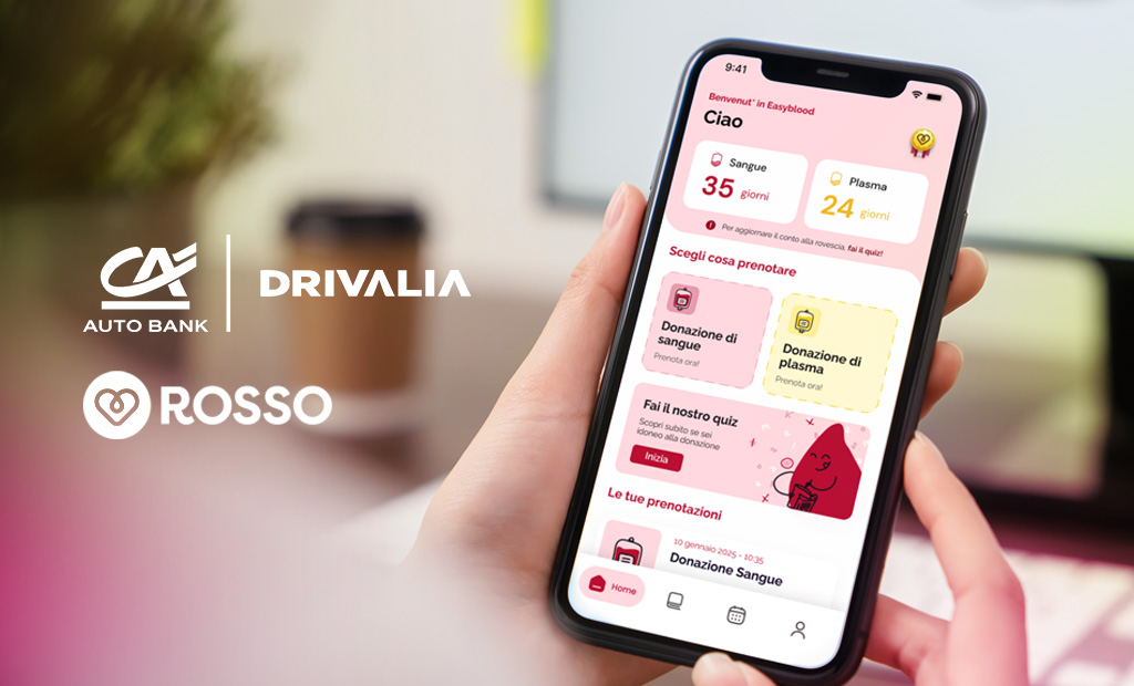All’interno di questa collaborazione, i dipendenti di CA Auto Bank e Drivalia avranno a disposizione la piattaforma EasyBlood di Rosso, dedicata al Gruppo, che consentirà di prenotare in modo semplice la propria donazione di sangue o plasma, in qualunque momento.